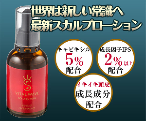 育毛剤バイタルウェーブは、一歩先行くスカルプ成分を高濃度配合した話題の育毛剤。